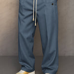 Designul său modern, cu pliuri marcate în față și talie ajustabilă cu șiret, oferă un aspect rafinat fără a sacrifica libertatea de mișcare. Ideal pentru birou, ieșiri în oraș sau momente de relaxare, este piesa versatilă care se potrivește tuturor ocaziilor.