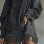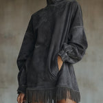 Patricia – rochie elegantă din velur cu guler înalt și franjuri