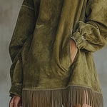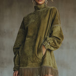 Rochia Patricia din material moale de velur în culoarea măslinului combină o croială modernă cu o eleganță delicată. Gulerul înalt și mânecile oversized creează un aspect trendy, relaxat, în timp ce tivul cu franjuri adaugă rochiei mișcare și originalitate. Datorită croielii libere și confortabile, este ideală atât purtată singură, cât și ca parte a unui outfit stratificat. O alegere perfectă pentru uzul zilnic, întâlniri cu prietenii sau ocazii de modă în care vrei să strălucești.