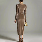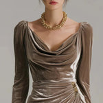 Rochia Renata combină un design sofisticat cu detalii care îmbunătățesc silueta, oferind o prezență impecabilă pentru ocazii speciale. Materialul său moale și ușor lucios din catifea oferă un finisaj luxos, în timp ce croiala care flatează creează o siluetă elegantă perfectă pentru sezon, ideală atât pentru cine, cât și pentru evenimente.