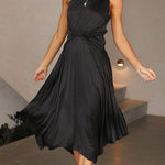 Rochia Midi cu Un Umăr Cali în Negru este alegerea perfectă pentru momentele deosebite din această sezon. Cu un croi elegant cu un umăr, detaliu răsucit care flatează talia și o fustă plisată elegantă care se termină cu un tiv asimetric, acest articol a fost creat pentru a atrage privirile. Indiferent dacă mergi la o petrecere sau ești îmbrăcată elegant pentru o nuntă, această rochie midi aduce o sofisticare fără efort.
