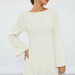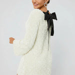 Adăugați un strop de strălucire ținutei dumneavoastră de sărbătoare cu această uimitoare rochie cu paiete Clara Bow Back. Aceasta se remarcă prin mânecile dramatice în formă de clopot și o fundiță elegantă, în contrast, la spate.