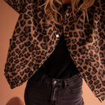 O jachetă tip cămașă cu croială lejeră care combină imprimeul elegant cu leopard, mângâierea moale și versatilitatea. Țesătura caldă învăluie fără a fi grea; nasturii cu clic și buzunarele din față adaugă practicitate. Perfectă cu blugi închisi sau pantaloni negri pentru un look îndrăzneț, dar rafinat.