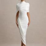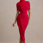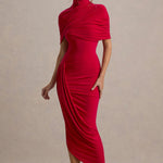 Rafinament și glamour pur cu rochia noastră Taylor Maxi Fabricată dintr-un jersey elastic de înaltă calitate, de un roșu vibrant, această rochie îți pune în valoare silueta din orice unghi. Decolteul înalt și mânecile de tip pelerină o fac piesa perfectă pentru o ocazie elegantă. Combin-o cu cercei statement pentru un look deosebit.